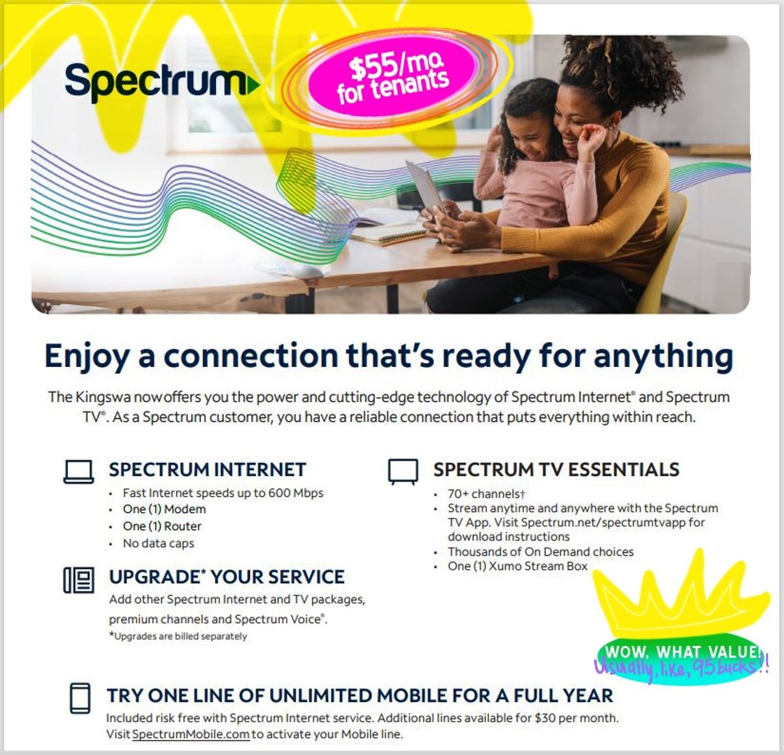 OH AND!! We worked out a lil deal w/ Spectrum, so you get 600mbps/70+channels for only an added $55/mo.
